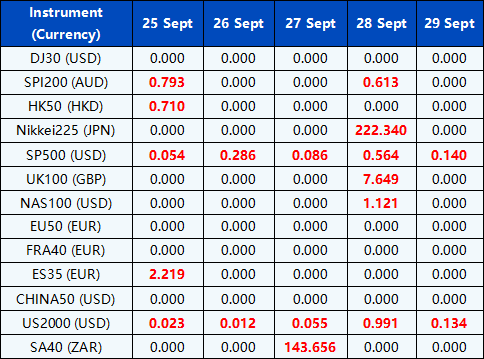 Please note that the above data are subject to changes. Please refer to MT4/MT5 for details.