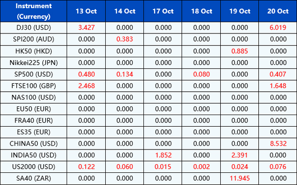 Please be advised that the following instruments’ trading hours and market session times will be affected by the upcoming Oct holidays.