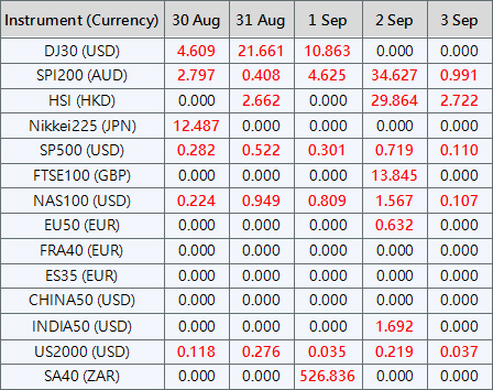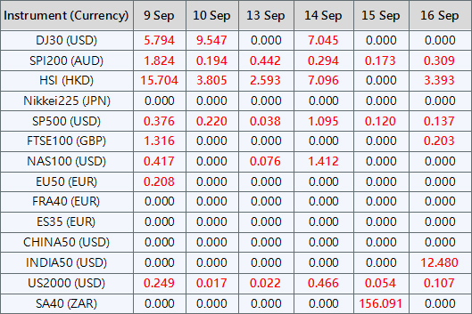 Please be advised that the dividends of the following index CFDs will be adjusted by upcoming ex-dividend dates. The comment for trading index CFDs will be in the following format “Div&<Product Name>&<Net Volume>” which show in the balance after the close of the day before the dividend payment date.