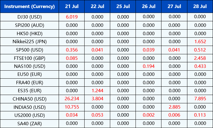Please be advised that the dividends of the following index CFDs will be adjusted by upcoming ex-dividend dates. The comment for trading index CFDs will be in the following format “Div&<Product Name>&<Net Volume>” which show in the balance after the close of the day before the dividend payment date.