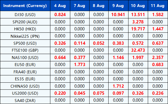 Please be advised that the dividends of the following index CFDs will be adjusted by upcoming ex-dividend dates. The comment for trading index CFDs will be in the following format “Div&<Product Name>&<Net Volume>” which show in the balance after the close of the day before the dividend payment date.