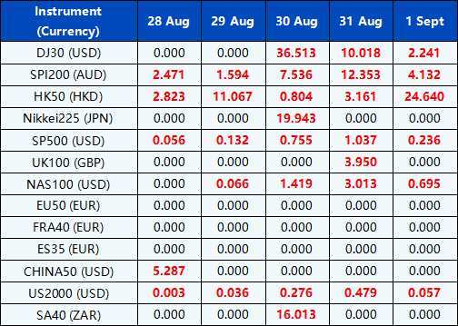 Please note the above data are subject to changes. Please refer to MT4/MT5 for details.